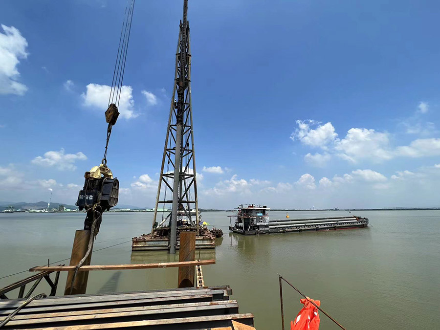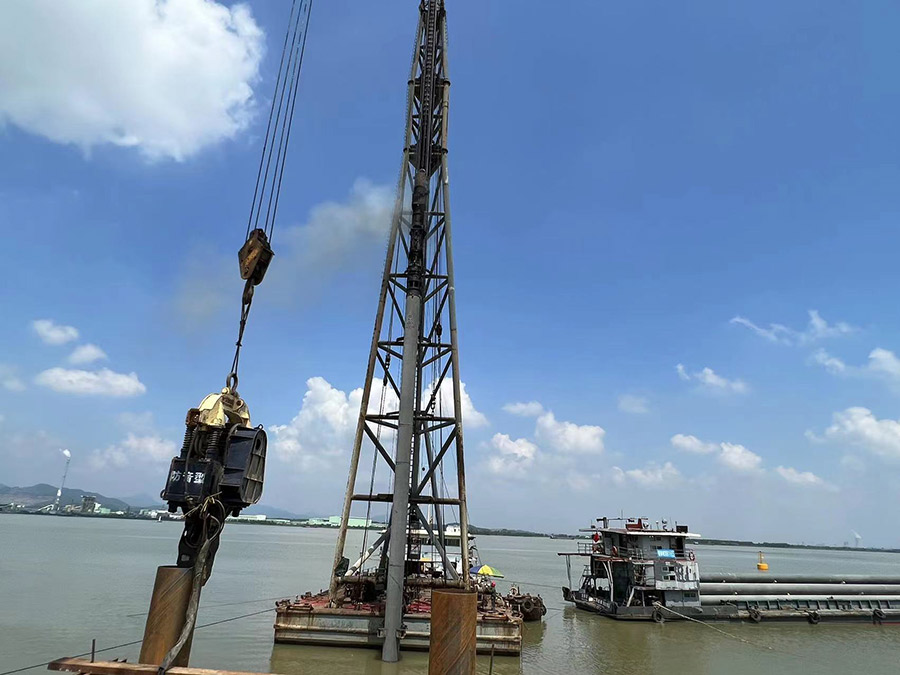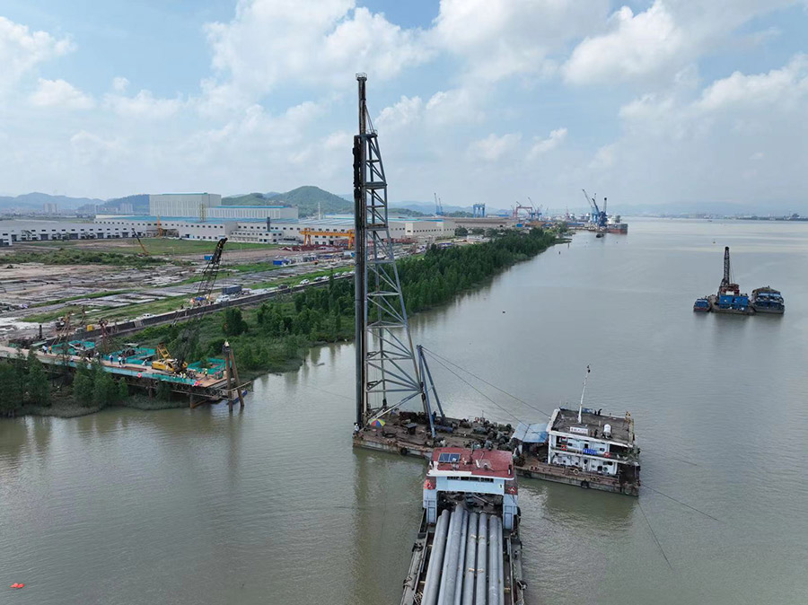 華津黑色金屬碼頭首根鋼管樁成功入海