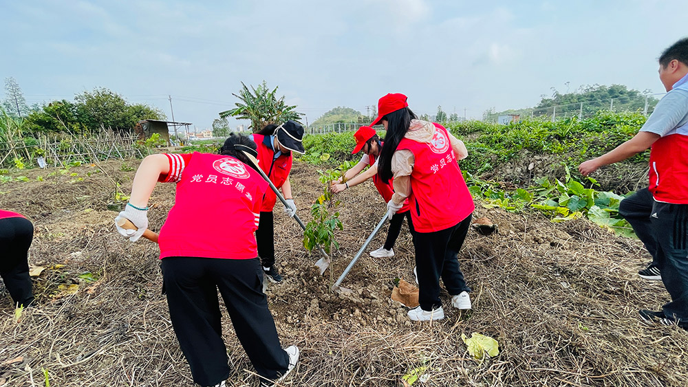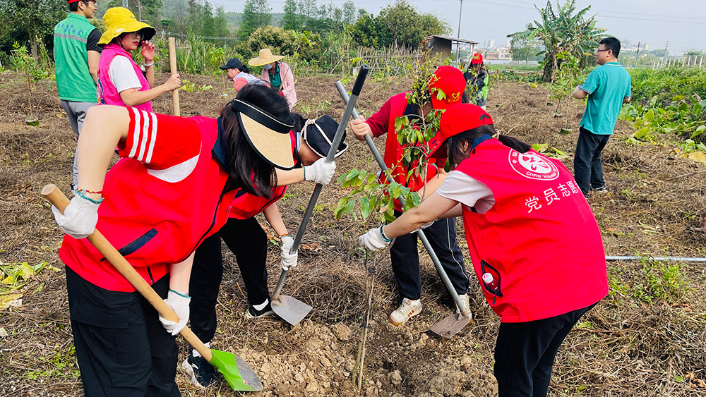 活動現(xiàn)場,職工們熱情高漲、配合默契,有序完成揮鋤挖坑、扶苗培土、踩實澆水等工序。經(jīng)過共同努力,120株龍眼樹苗扎根沃土,為大地增添盎然生機。